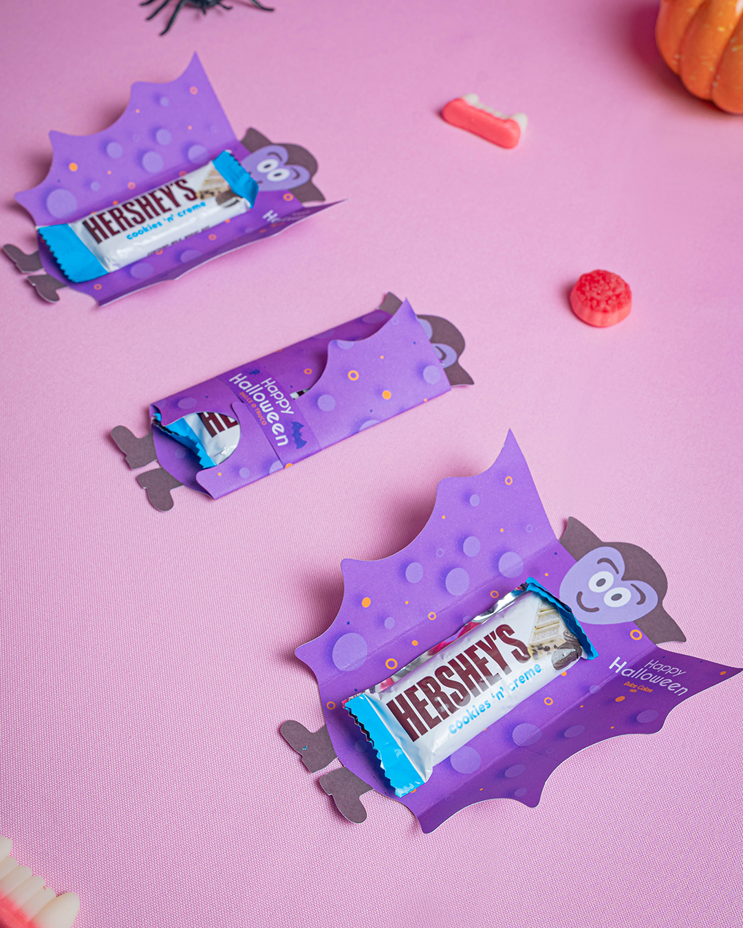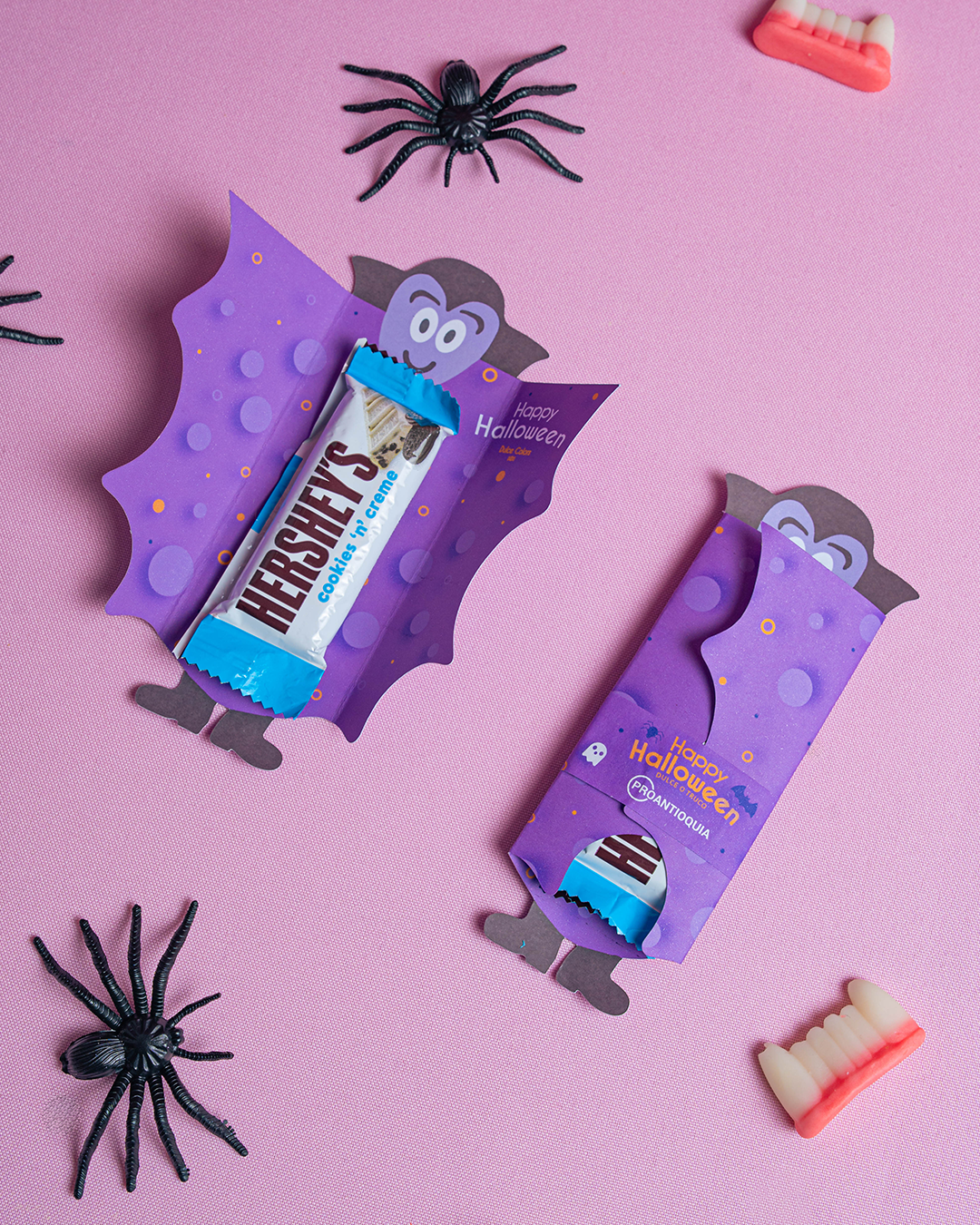 En su interior esconde una deliciosa chocolatina Hershey’s, que se revela al abrir su capa 🦇🍫